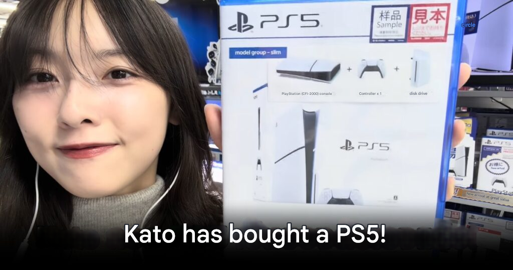 The video follows her cheerful walk through the gaming section of the Bic Camera store in Ikebukuro. She narrates the experience with lively curiosity as she browses shelves full of games and collectibles. At one point she spots Tamagotchi toys and admits it is the first time she has ever seen them available in person. Her energy and reactions set a bright tone throughout the visit until she finally arrives at the PlayStation 5 zone, the highlight of her trip and the reason for her visit.