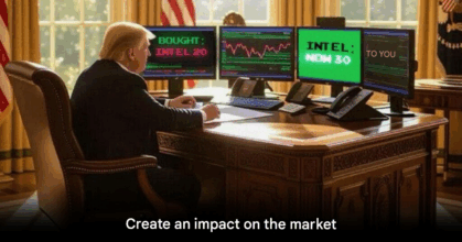 Donald Trump posts an AI image trading Intel stock as the US takes a 10% stake, signaling strategy to secure…
